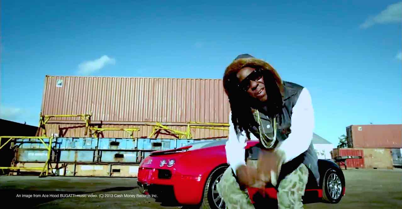 An example of this methodology in action is embodied in the work of hip hop artist Ace Hood. His collaboration with record producer DJ Khaled and Rick Ross led to the creation of a stylistic musical anthem titled BUGATTI. In the song, the rappers edify an opulent lifestyle and “diss” anyone and everyone who isn’t driving a Bugatti Veyron, in a catchy tune and with the lyrics “I woke up in a new Bugatti”. In this case the Bugatti brand is marketed as the personification of success.
